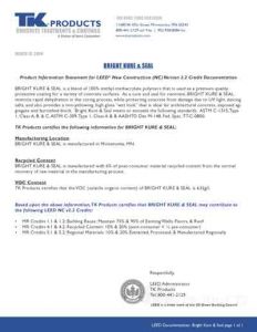Ahora Disponible , Datos de producto en espanol para TK Products Bright Kure and Seal
